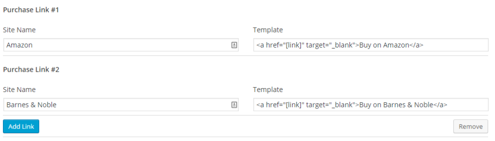 Typically, all templates will be exactly the same, but you’d change the link text. So you might have “Buy on Amazon” for this link, but for your Barnes & Noble one you’d change it to “Buy on B&N” or similar.